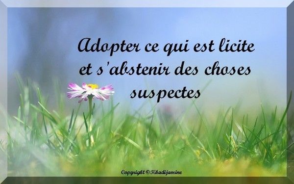 " Certes, le licite est clair de même que le licite. Mais il y a entre les deux, des choses suspectes que beaucoup de gens ne connaissent pas. Quiconque se garde des choses suspectes, préserve la pureté de sa religion et de son honneur.