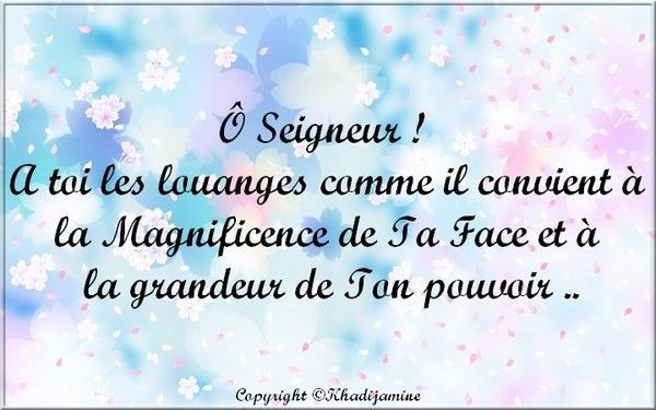 Il a dit : " Ô Seigneur ! Louange à Toi comme il sied à La Majesté de ta Face et à l'immensité de Ton Autorité ".