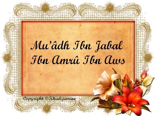 Abû Bahriyya a dit : " Je suis entré dans la mosquée de Hims et j'y ai trouvé un jeune homme au visage maigre et rond et aux cheveux courts et crépus, entouré de gens. Lorsqu'il parlait, c'est comme si de la lumière et des perles sortaient de sa bouche. J'ai demandé qui il était et on m'a répondu qu'il s'agissait de Mu'âdh Ibn Jabal ".