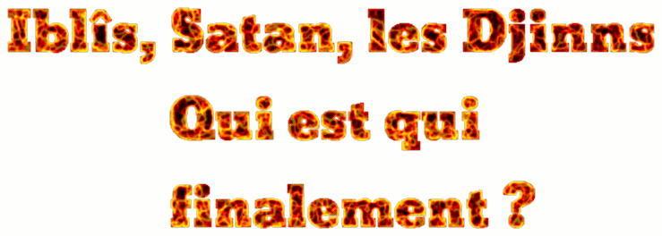 (*) Le cas du mot jânn est différent dans le Coran puisqu'il semble désigner tant Satan (Iblîs) que le djinn en tant qu'espèce. Et Allah sait mieux.