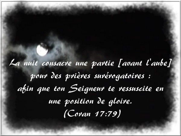 Acquitte-toi de ce que Nous t'avons ordonné, afin qu'au Jour de la Résurrection, Nous t'attribuions une position de gloire pour laquelle te loueront toutes les créatures, ainsi que le Créateur.