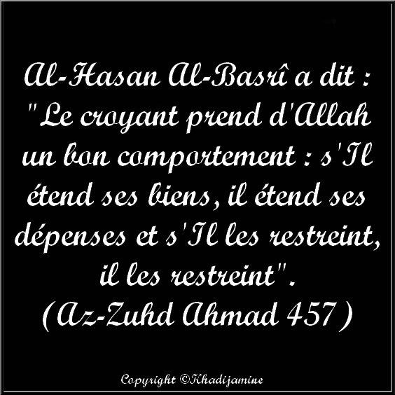 " Ô gens de Damas ! Venez écouter le conseil d’un frère ! Qu’ai-je à vous voir construire des maisons que vous n’habitez pas, amasser des biens que vous n‘utilisez pas, poursuivre des rêves que vous n’atteindrez pas ? Ceux d’avant vous ont bâti de grandes constructions, eu de grands rêves, amassé beaucoup de biens, mais leurs rêves les ont trompés, leurs biens sont devenus poussières et leurs demeures des tombes ".
