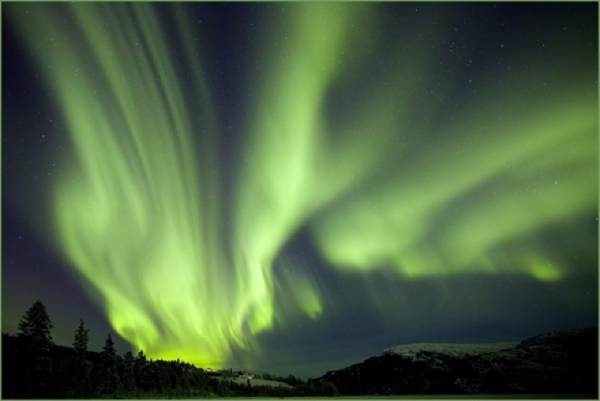 L'Aurore polaire (également appelée aurore boréale dans l'hémisphére nord et aurore australe dans l'hémisphére sud) et un phénoméne lumineux caractérisé par des voiles extrêmement colorés dans le ciel nocturne, vert étant prédominant .