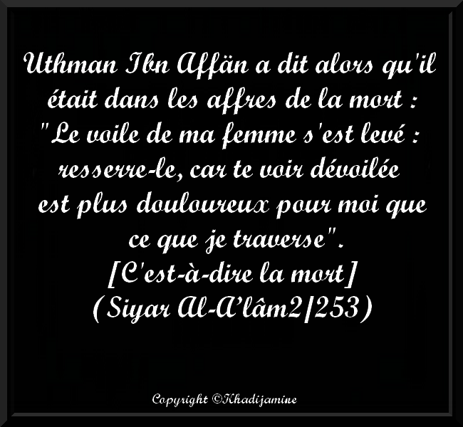 Uthmân Ibn Affân (qu'Allah soit satisfait de lui) a dit à propos de l’Ange de la mort : " Et ne l’oublie pas, car il ne t’oublie pas ".