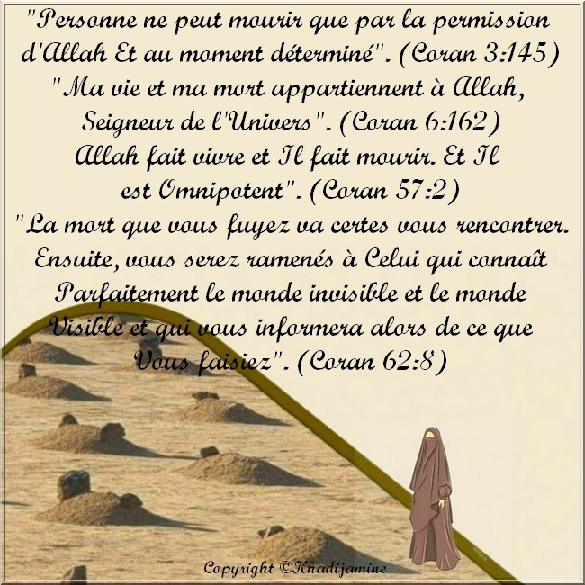 " Je jure par Celui en dehors de qui il n'y a pas de divinité méritant d'être adorée ! Il n'y a pas une seule âme sur la Terre pour laquelle la mort n'est pas un bien si la personne est croyante, car Allah a certes dit : " Mais quant à ceux qui craignent leur Seigneur, ils auront des Jardins sous lesquels coulent les ruisseaux ". (Coran 3:198) Par contre s'il s'agit d'un pervers, alors Allah a certes dit : " Si Nous leur accordons un délai, c'est seulement pour qu'ils augmentent leurs péchés ". (Coran 3:178)