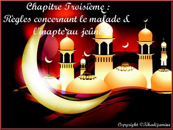 - Troisième chapitre : Règles concernant le malade et l’inapte au jeûne.